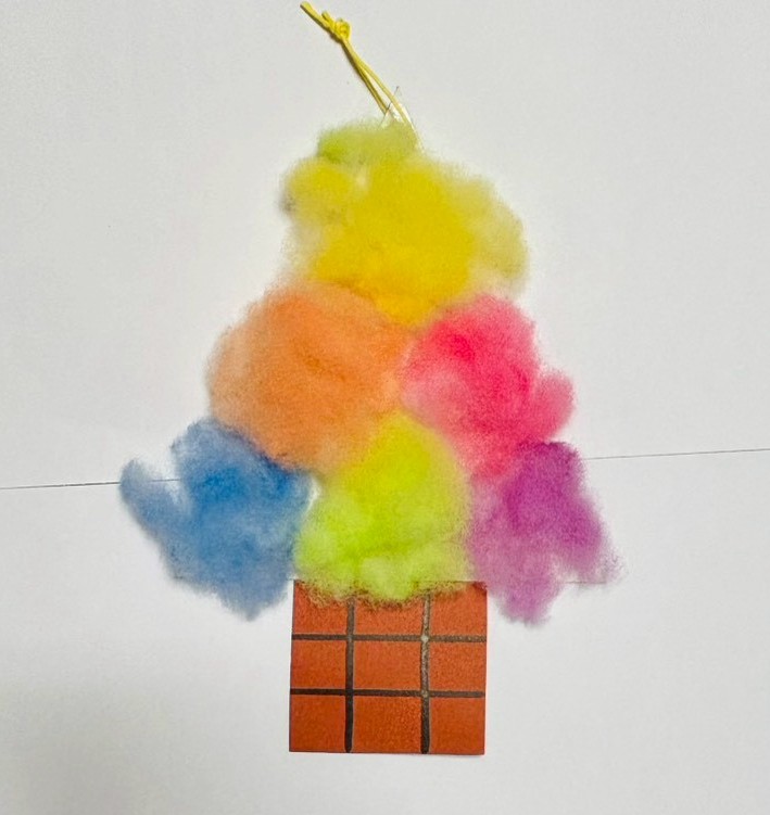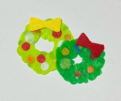 毛糸や綿、キャップアートでオーナメントを作るなど